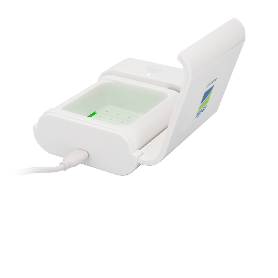 Hygienestation für funktionserhaltende Trocknung, hygienische Sauberkeit und sichere Aufbewahrung von Hörsystemen. Die Hygienestation ist leicht zu bedienen und einfach zu reinigen.