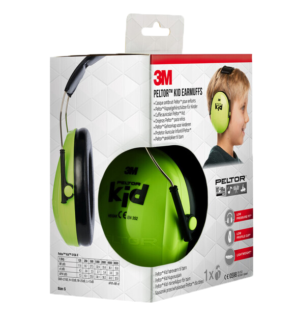 Bequemer und effektiver Gehörschutz für jüngere Träger über fünf Jahren. Die neongrüne Farbe ist gut sichtbar und erhöht damit die Sicherheit.